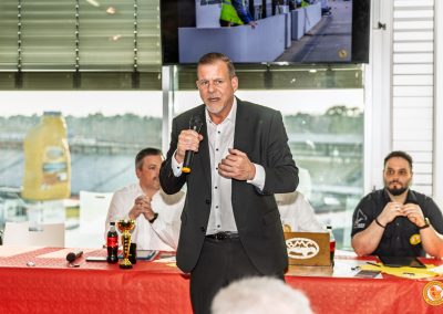 Jörg Bensemann, der Präsident des BMC, begrüßte die Anwesenden und eröffnete die Versammlung. In seiner Ansprache betonte er die Bedeutung der Veran­staltung und zeigte sich erfreut über die große Teilnahme: „Ich freue mich über einen tollen Tag und eine erfolg­reiche Jahres­haupt­ver­sammlung des BMC mit so vielen Anwesenden. Der BMC ist ein wichtiger Bestandteil des Hocken­heim­rings und steht für Engagement, Zusam­menhalt und Leiden­schaft im Motorsport.“